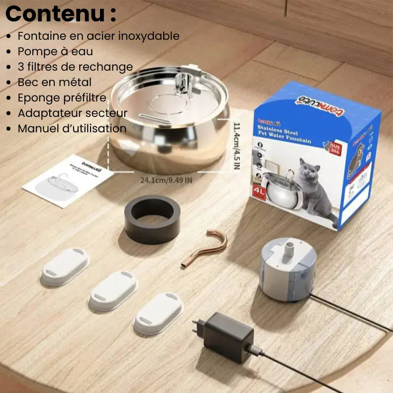 Fluffin Serenity Flow® – Fontaine à eau inox ultra-silencieuse pour animaux