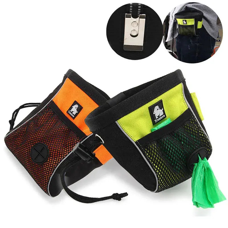 - Fonctions : Sac de friandises, distributeur de sacs à crottes, rangement portable mains libres
